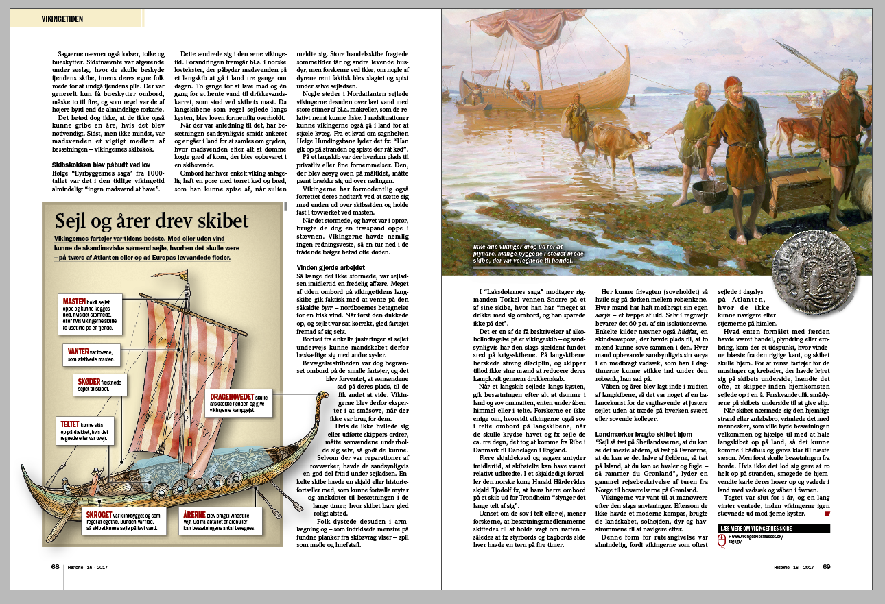 El cliente enriqueció la imagen de un drakkar vikingo incorporando una trama translúcida de color azulado sobre la cubierta para representar la lona con que se habilitaba el centro de la embarcación en zona de descanso o de abrigo. La revista de historia danesa Illustreret Videnskab Historie publicó esta imagen de la nave vikinga, que sirvió para ilustrar una pieza sobre este pueblo escandinavo que asoló las costas de toda Europa del siglo VIII al XI, fundó reinos y dinastías, y descubrió nuevos territorios como Islandia, Groenlandia y el continente americano.